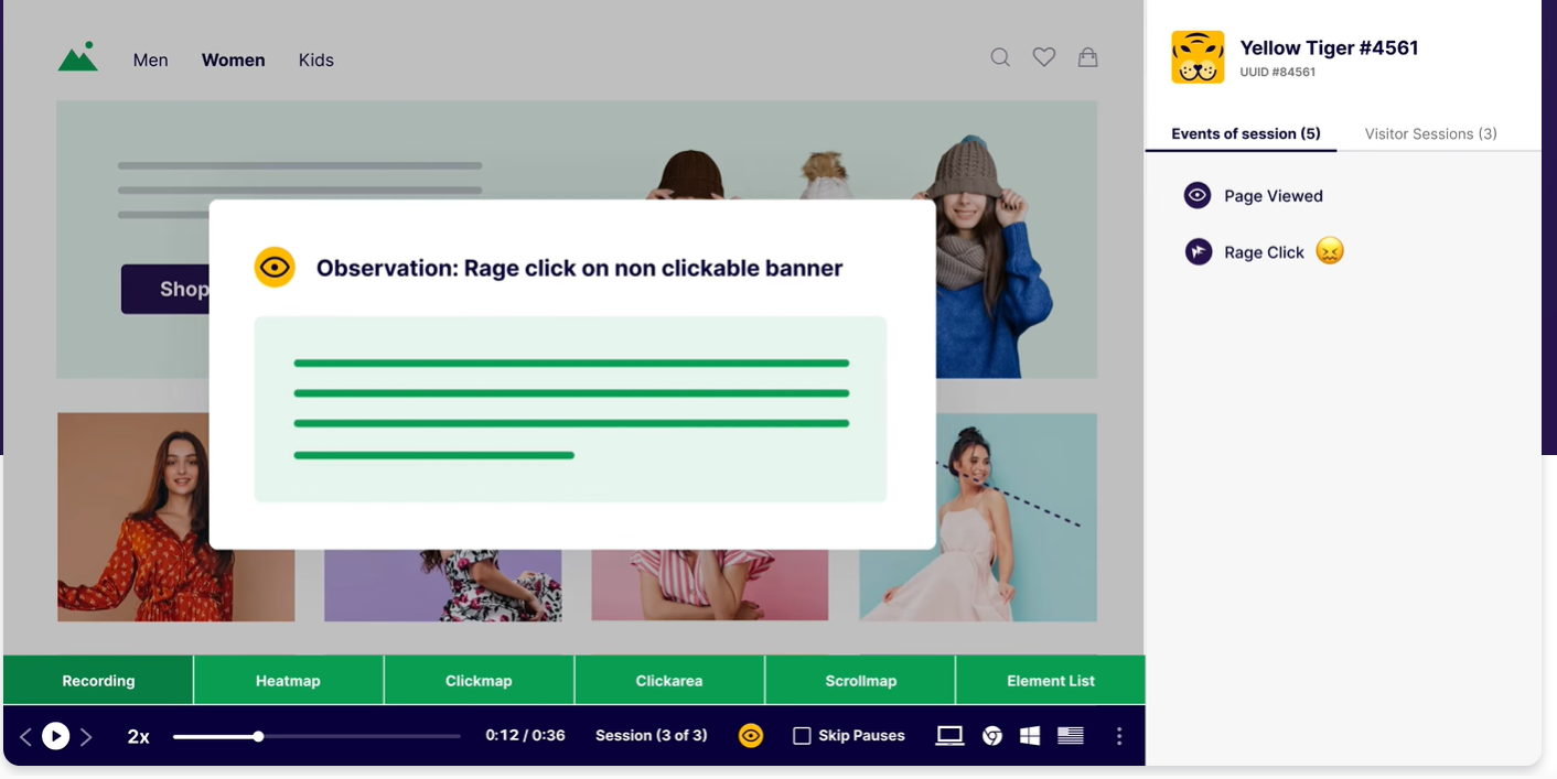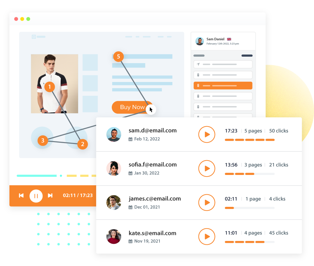 Watch real user sessions with full playback to understand exactly how visitors interact with your site.